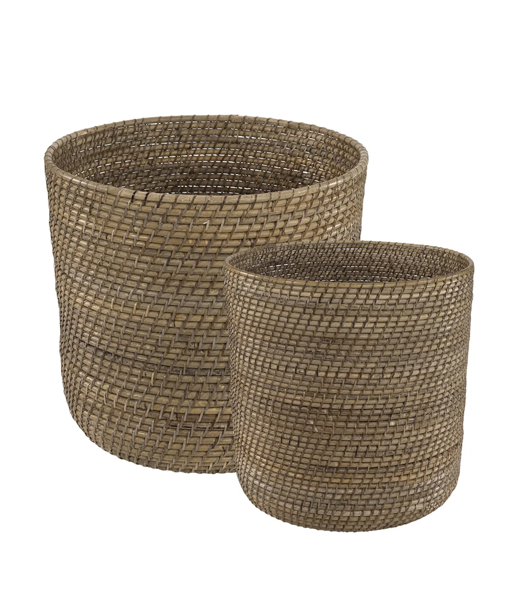 2-pack of handwoven rattan baskets. These baskets offer versatile use, making them perfect for storing toys, magazines, or serving as decorative accents. The sturdy construction ensures that the baskets retain their shape and function over time.