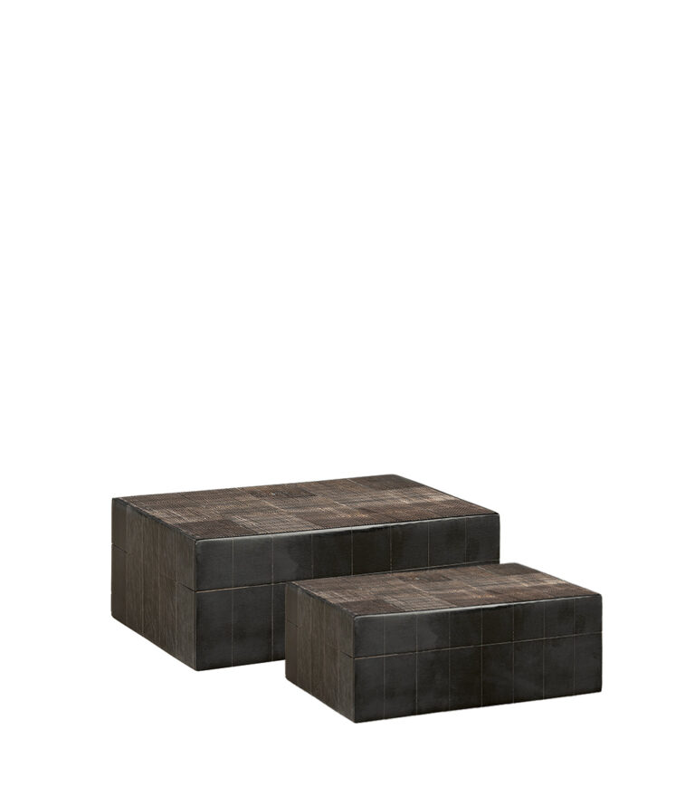 Discover this exclusive 2-pack of boxes made from horn, resin, and MDF. Each piece is unique in both texture and appearance, giving your home an authentic and sophisticated feel. These boxes are perfect for storing small items or as elegant decorative pieces on a shelf, table, or sideboard. Their natural beauty and unique design make them a stylish addition to both modern and classic interiors.