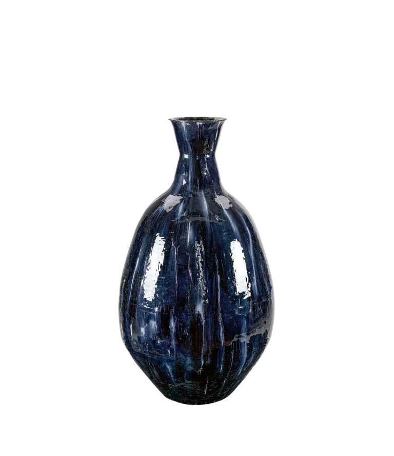 Add a timeless and elegant touch to your home with this unique floor vase, crafted from hand-enameled metal with a glossy, polished surface. Each vase is a piece of art, featuring slight variations in appearance that make it a personal and exclusive addition to your interior design.