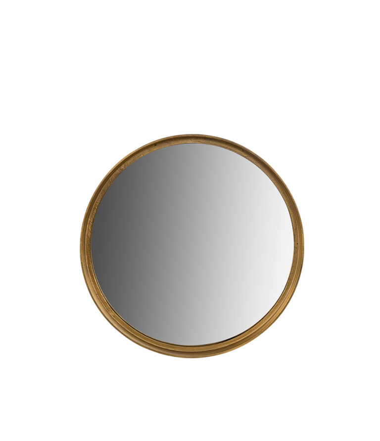 A round mirror with a metal frame. Its timeless design fits equally well in modern and classic settings, reflecting light to create a sense of space in any room. Perfect for the living room, bedroom, or hallway.