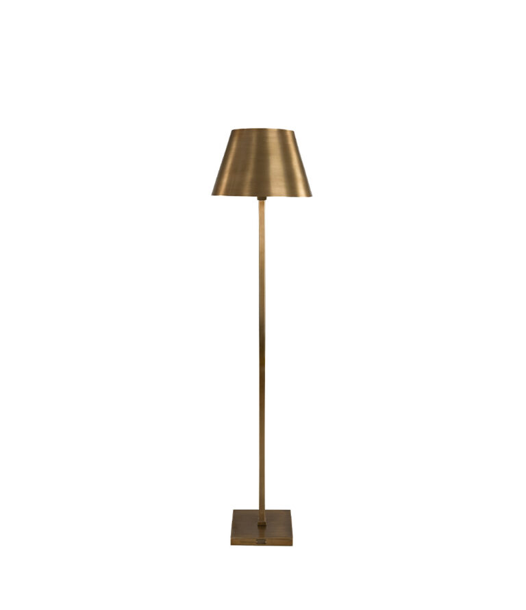 Floor lamp in brass-colored metal with a sleek design that blends seamlessly into most environments and rooms. Thanks to its slim design, it takes up little space and can easily be placed next to the sofa, armchair, or in one of the corners of your home. Note: Lampshade not included. The lampshade shown in the product image: 82-01340.