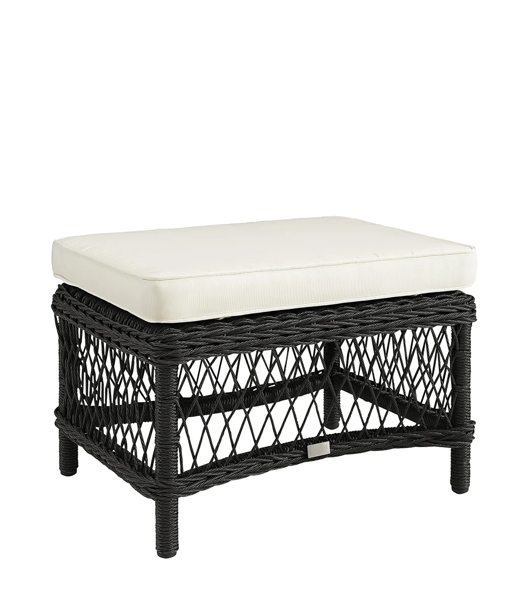 Marbella is an elegant and durable footstool made from handwoven, color-through synthetic rattan, designed to bring an exclusive and inviting feel to your outdoor space. The sturdy aluminum frame provides stability while keeping the furniture lightweight and easy to move. Perfect as a comfortable footrest or an extra seat for the patio, terrace, or garden.