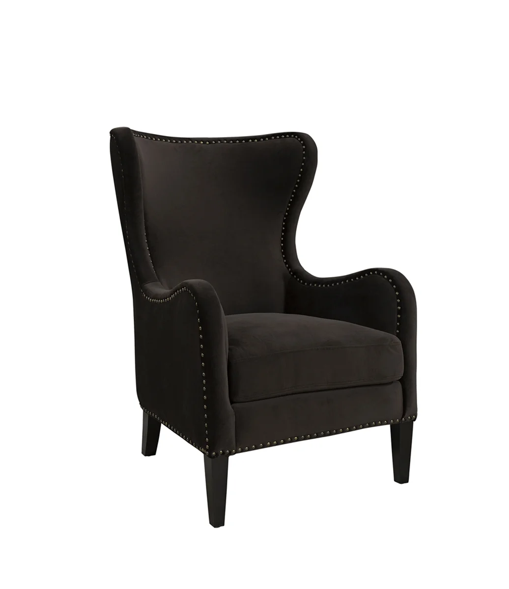 Mischa fabric armchair combines timeless design with modern details. With its shaped, high back and decorative metal studs in an antique finish, this armchair becomes a stylish centerpiece in your home. The sturdy wooden legs add a solid feel and blend perfectly with both modern and classic interiors.