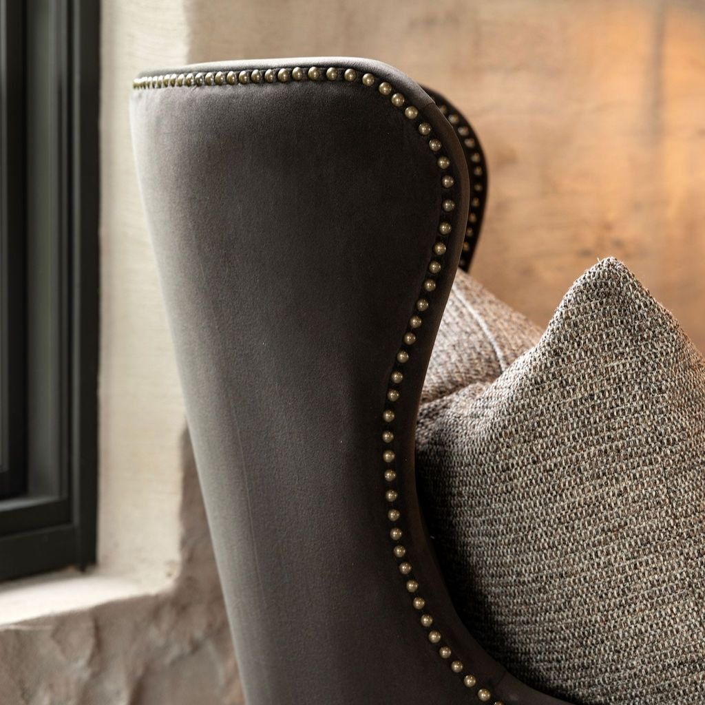 The Mischa Velvet Armchair combines timeless design with modern details. With its shaped, high back and decorative antique-finish metal studs, this armchair becomes a stylish focal point in your home. The sturdy wooden legs provide a solid feel and complement both modern and classic interiors.
