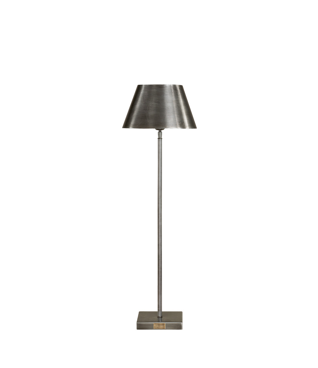 Table lamp in metal with an elegant and sleek design that fits into most rooms and environments. The compact shape makes it easy to place the lamp on a bedside table, desk, or windowsill. Black textile cord.