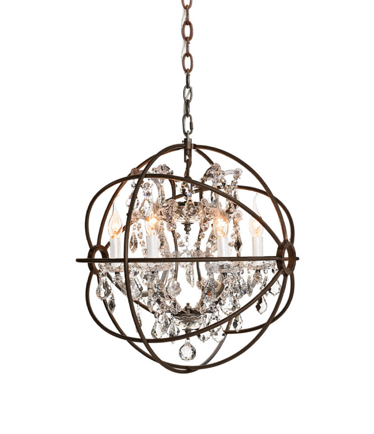 Ceiling lamp in metal, designed to resemble a chandelier with thin metal circles and crystal prisms. The chain length is 120 cm, and the cord length is 180 cm, offering flexible installation options. Need more length? An additional 60 cm chain is available for purchase. The lamp accommodates six light bulbs, providing ample and stylish lighting in any room. Perfect for creating a modern, industrial feel in your decor.