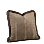 Serena Stripe Chestnut is a clean-lined cushion cover with a subtle stripe pattern in warm chestnut tones. The dark brown fringe frames the cushion and creates a more inviting, decorative expression.