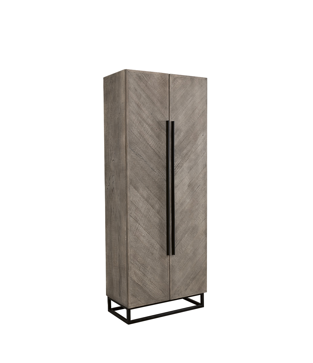The Vancouver cabinet perfectly combines elegance and functionality, designed to give your home a sophisticated impression. Made from oak veneer with a distinctive herringbone pattern, this cabinet serves as an elegant focal point in any room. The matte black steel legs and handles create a modern contrast that accentuates the sleek design. Featuring two adjustable shelves and a fixed drawer, the cabinet offers customizable storage to meet your needs. This blend of practicality and aesthetic appeal makes it ideal for the living room, bedroom, or hallway.