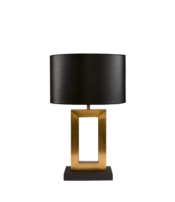 Bordslampa i metall med raka linjer och en rektangulär bas som gör den lättplacerad i alla rum.