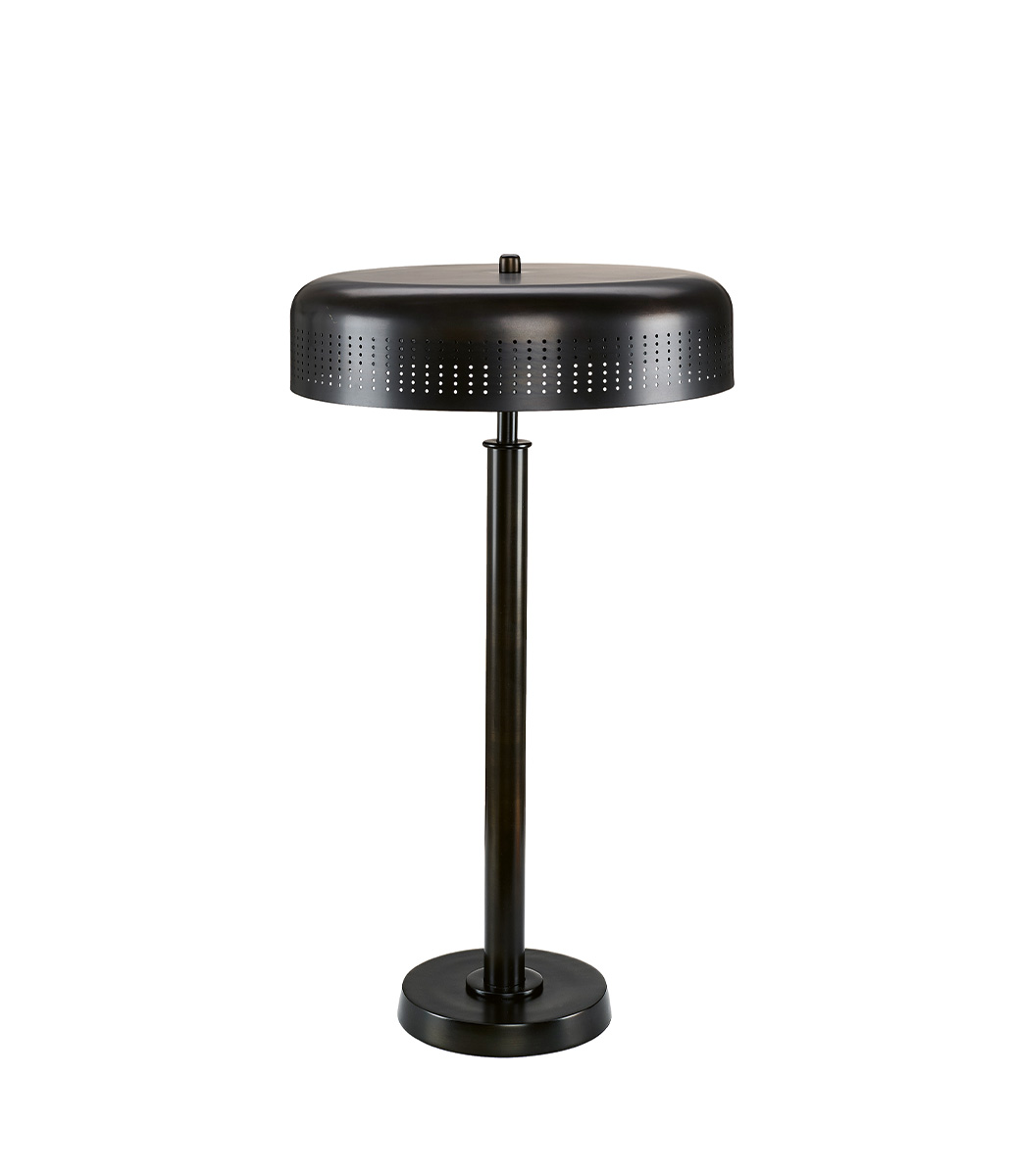 Observera att lampskärmen köps separat. Du kan välja mellan två modeller: en rund eller en oval hålmönstrad skärm, båda designade för att sprida ljuset på ett stämningsfullt sätt. Lampan på bilden är visad med den ovala skärmen.