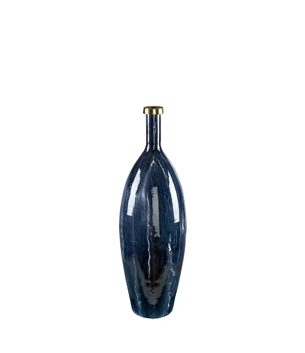 Unik vas tillverkad av handemaljerad metall med en blank och glansig yta. Varje vas är ett konstverk i sig, med subtila variationer i utseende som ger den en personlig och exklusiv prägel i din inredning. Denna vas fungerar lika bra som en dekorativ detalj som för att framhäva blommor eller kvistar på ett bord, en skänk eller i en hylla.