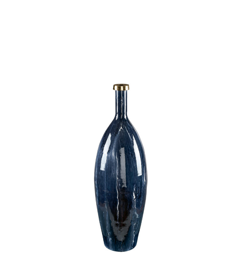 Ge ditt hem en tidlös och elegant touch med denna unika vas, tillverkad av handemaljerad metall med en blank och glansig yta. Varje vas är ett konstverk i sig, med små variationer i utseende som gör den till ett personligt och exklusivt inslag i din inredning. Denna vas fungerar lika väl som en dekorativ detalj som för att framhäva blommor eller kvistar på ett bord, en skänk eller i en hylla. Dess robusta konstruktion och vackra emaljerade finish kombinerar funktion och design på ett sätt som få andra detaljer kan.