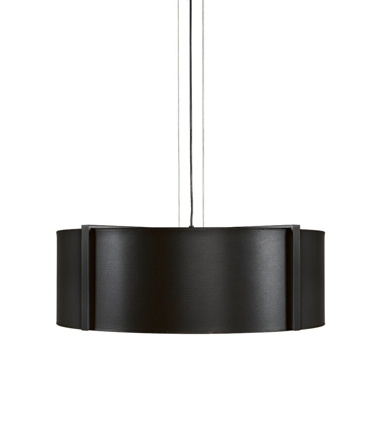 Taklampa i pendelmodell med skärm i läderimitation och svart metallram, vilket ger en ombonad men samtidigt modern känsla. Med plats för fyra ljuskällor skapar den en stämningsfull belysning. Denna stilrena lampa passar perfekt i de flesta rum i ditt hem, från vardagsrum till sovrum och kök. Vajer/kabellängd: 300 cm (justerbar).