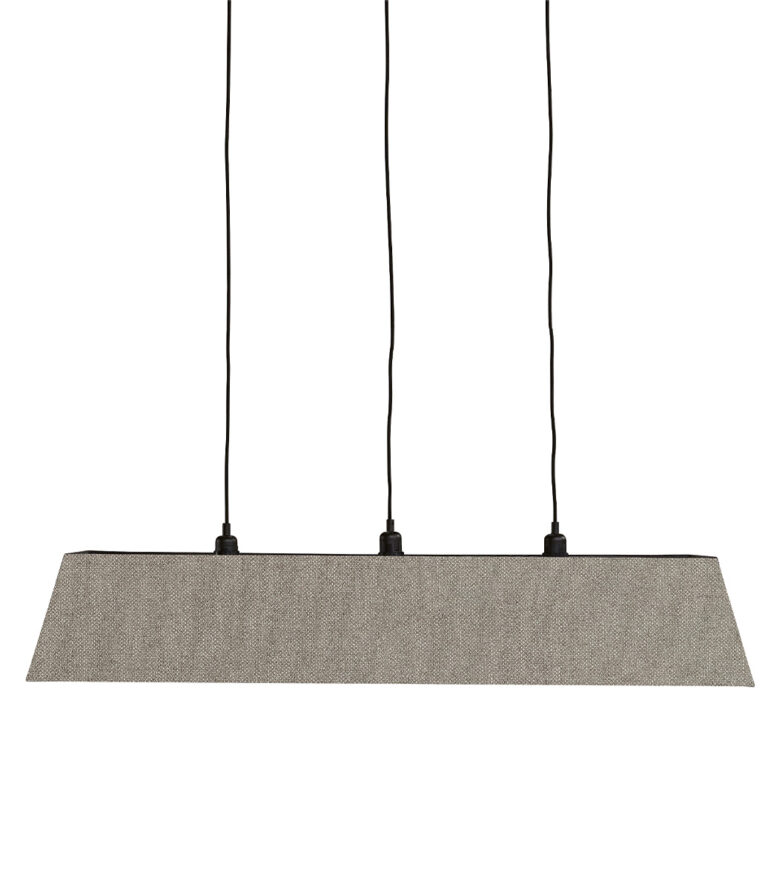 Taklampa i vävt tyg med tre ljuskällor – perfekt för modern och elegant belysning i matsal eller vardagsrum. Skärmen i vävt tyg skapar ett mjukt ljus och en stilren atmosfär, medan den justerbara vajern och kabeln (160 cm) gör det enkelt att anpassa höjden efter din inredning. Lampan har ett takfäste i svart metall som ger ett sobert och tidlöst uttryck.