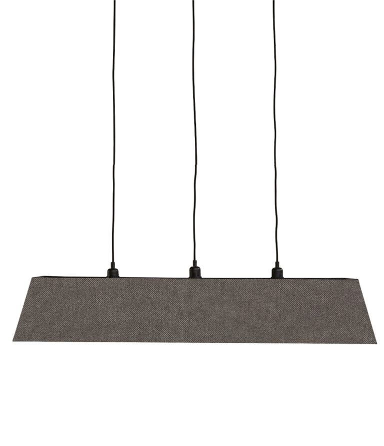 Taklampa i vävt tyg med tre ljuskällor – perfekt för modern och elegant belysning i matsal eller vardagsrum. Skärmen i vävt tyg skapar ett mjukt ljus och en stilren atmosfär, medan den justerbara vajern och kabeln (160 cm) gör det enkelt att anpassa höjden efter din inredning. Lampan har ett takfäste i svart metall som ger ett sobert och tidlöst uttryck.