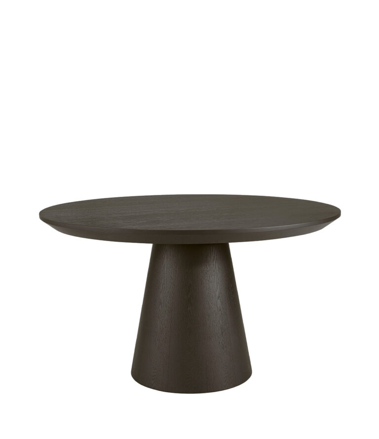 Runt matbord i massiv ekfanér med en perfekt kombination av elegans och funktion. Den cylinderformade stommen ger bordet ett stabilt och balanserat uttryck, vilket bidrar till en modern men samtidigt tidlös design som passar in i alla typer av inredningar. Slät bordsskiva med hård och tålig yta i en stilren design.