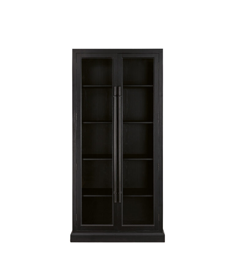 Colmar är ett vitrinskåp i svart askträ. Skåpet är uppdelat i två delar där nederdelen består av täckta dörrar för sakerna du inte vill visa upp, överskåpet är en klassisk vitrindel. Panelen på insidan, de enkla handtagen samt listerna ger skåpet en lätt lantlig stil. Skåpet har fyra flyttbara hyllplan.