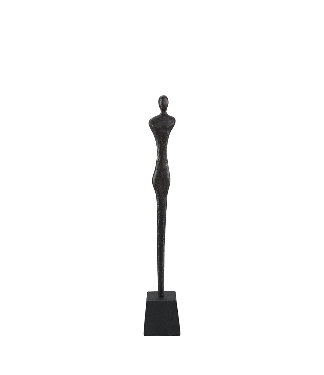 DONNA är en stilren staty i siluett av en kvinna. Den är tillverkad i matt metall med ytstruktur. Dess minimalistiska design och rena linjer skapar en modern, konstnärlig känsla som kompletterar alla interiörer. Perfekt för att tillföra en touch av sofistikering till ditt hem eller kontor. Höjd 69cm.