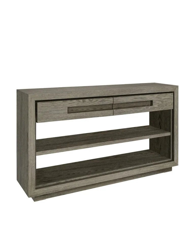 Hunter konsolbord kombinerar modern design med praktisk förvaring och är perfekt för hallen, vardagsrummet eller hemmakontoret. Tillverkat av ekfanér med en tydlig trästruktur ger det en varm och naturlig känsla som passar både moderna och klassiska hem.