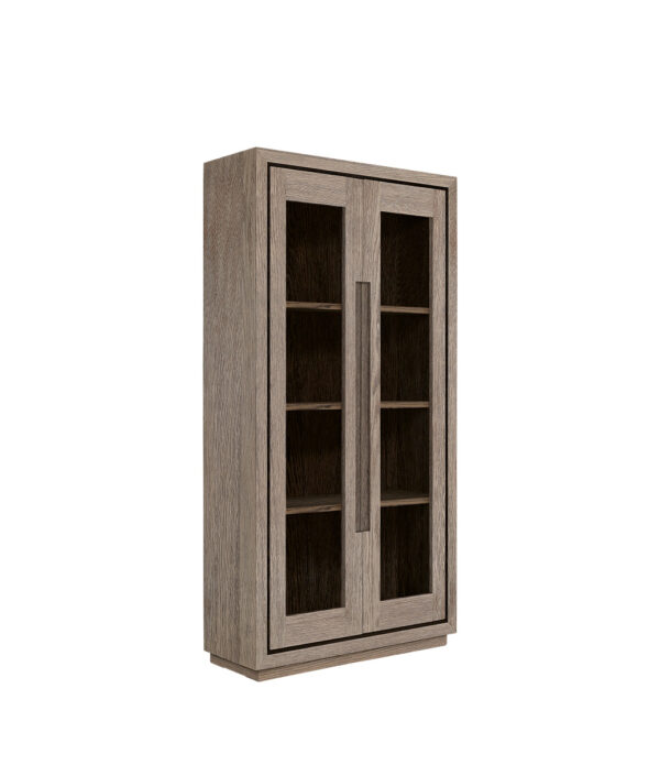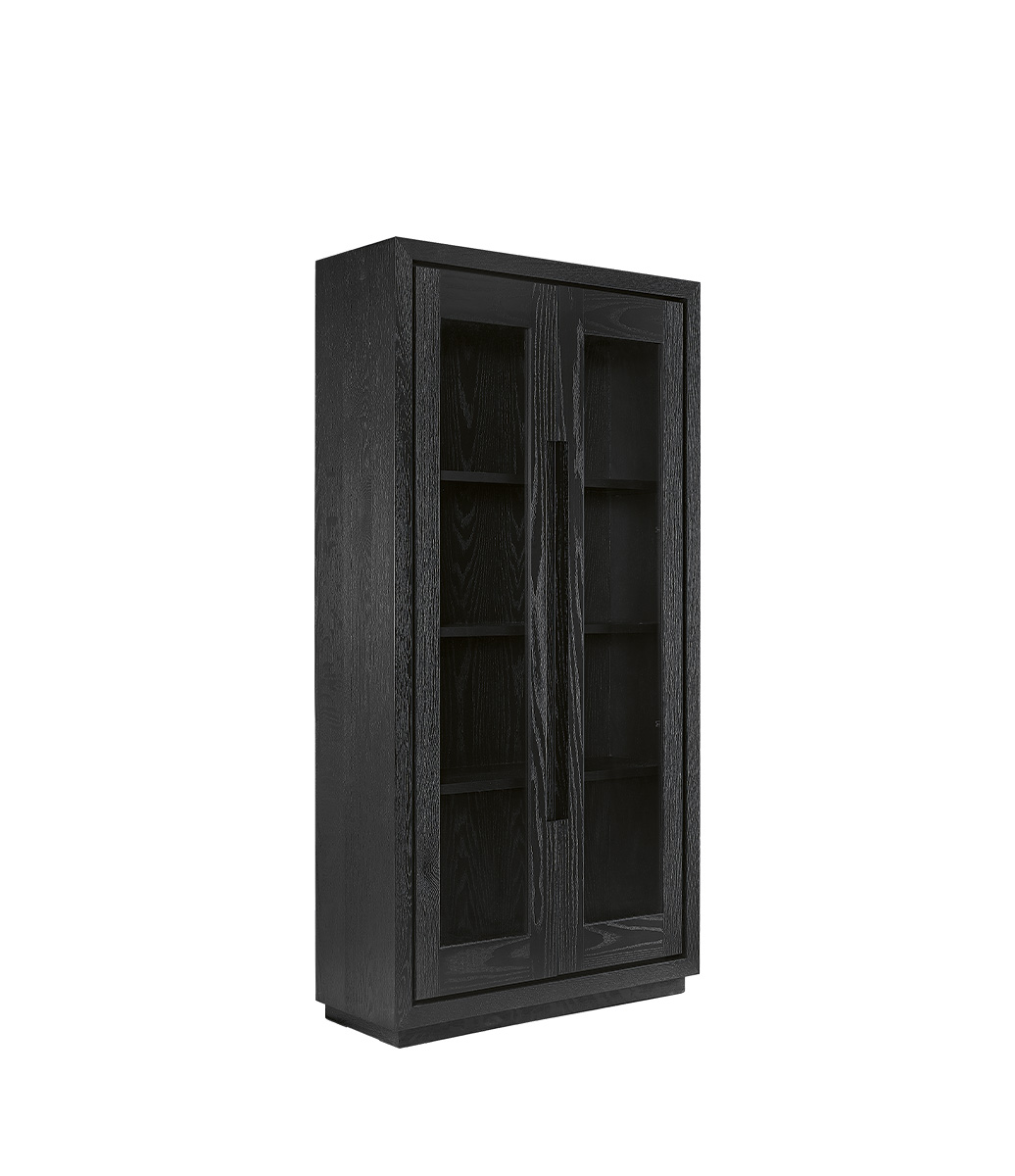 Hunter vitrinskåp i ekfanér kombinerar elegant design med en vacker och naturlig trästruktur, perfekt för moderna och stilmedvetna hem. Skåpet är utrustat med tre fasta hyllplan som erbjuder gott om utrymme för att visa upp dina favoritföremål, från glas och porslin till dekorativa detaljer. Med sitt minimalistiska uttryck och noggrant utvalda material är Hunter vitrinskåp både ett funktionellt och estetiskt tilltalande inslag i ditt hem. Dess tidlösa design gör det enkelt att kombinera med andra möbler i Hunter-kollektionen, såsom matbord, sängbord och byråer, för en harmonisk och enhetlig inredning.
