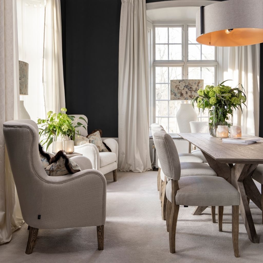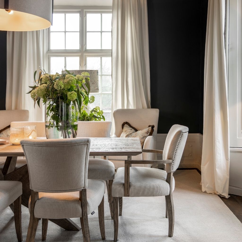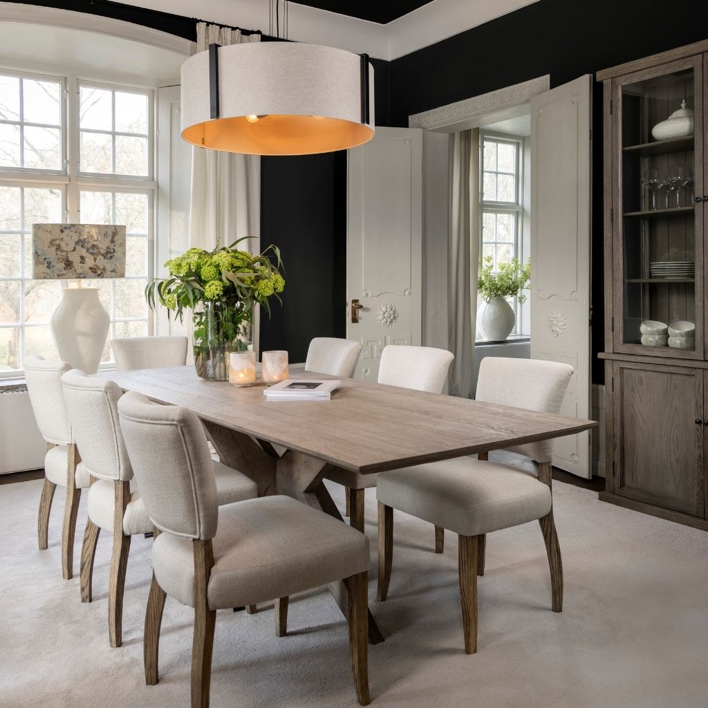 Lake Slim är ett stort och rymligt matbord i massiv rustik ek – perfekt för familjemiddagar, högtider och större sällskap. Den gedigna bordsskivan i kombination med de modernt korsade benen ger ett stabilt bord med gott om utrymme för benen, vilket skapar en luftig och bekväm sittupplevelse.