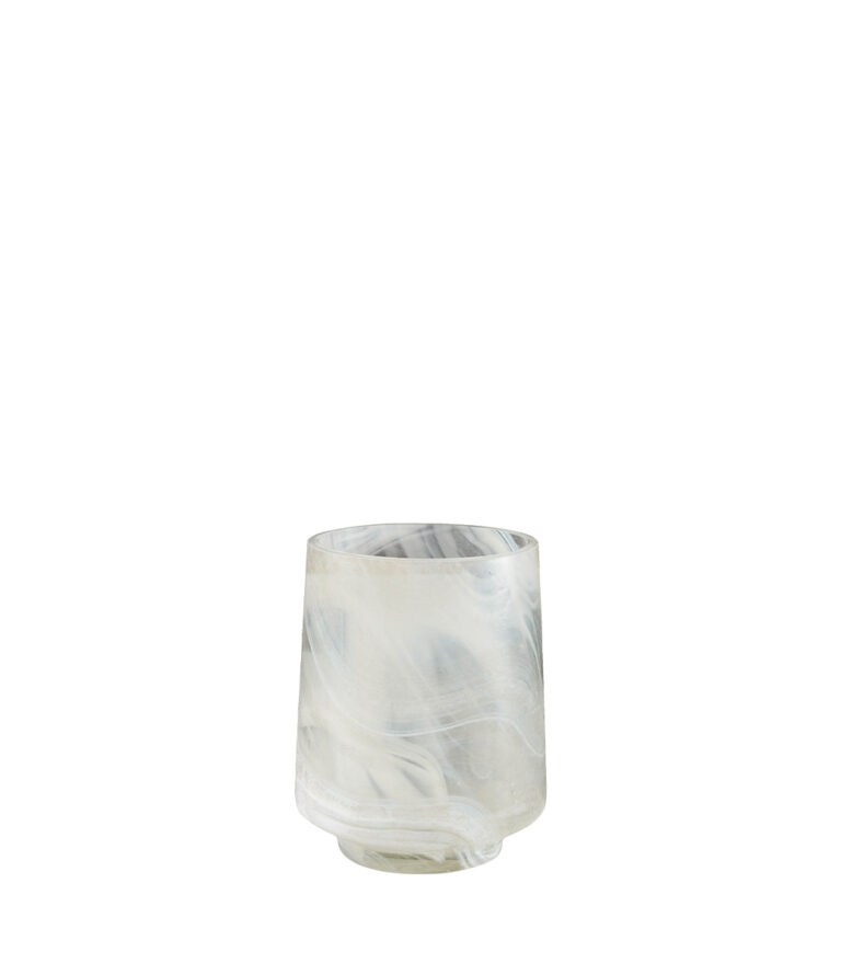 En ljuslykta i handblåst glas med marmorerat mönster är en vacker och unik detalj för ditt hem. Varje lykta är noggrant tillverkad och har ett unikt utseende, där små variationer i mönster och färg ger varje exemplar sin egen karaktär. Det handblåsta glaset ger lyktan en exklusiv och konstnärlig känsla, som skapar en varm och inbjudande atmosfär i rummet när ljuset sprider sig genom det marmorerade mönstret.