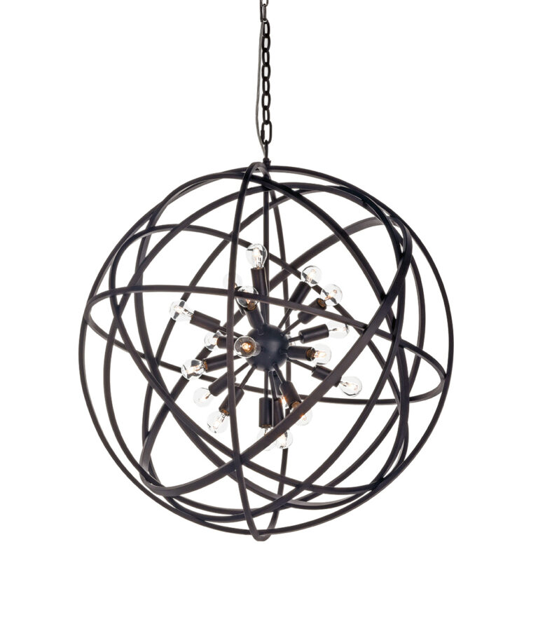 Taklampa i metall med ringar, perfekt för att skapa en sofistikerad och modern atmosfär i ditt hem. Lampan har en kedjelängd på 60 cm och en kabellängd på 120 cm, vilket gör den enkel att anpassa efter dina behov. Med plats för nitton ljuskällor ger den rikligt med ljus och stilfull belysning.
