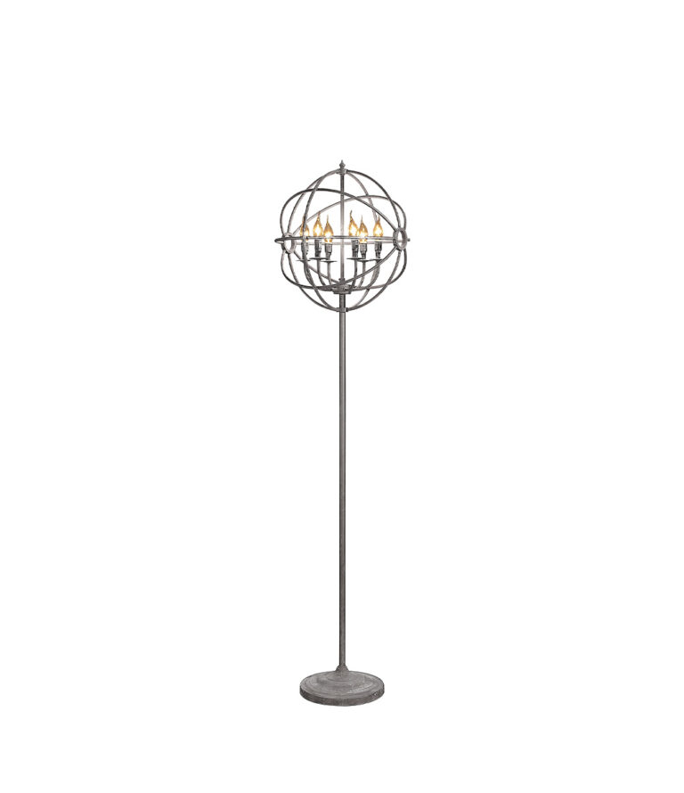 Golvlampa i metall, inspirerad av den eleganta designen hos en kristallkrona. Med sina 6 ljuskällor sprider lampan ett mjukt, lyxigt sken som skapar en sofistikerad atmosfär i ditt hem. Den inbyggda dimmern ger dig full kontroll över ljusstyrkan, så att du kan anpassa belysningen efter stämningen – perfekt för både vardagsrum och sovrum.