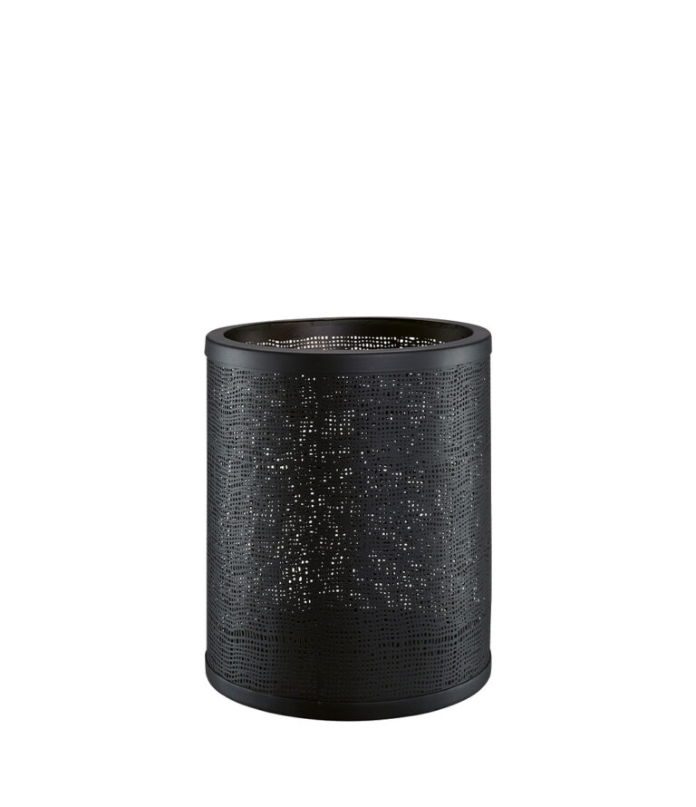 Skapa en inbjudande stämning med TARANTO i svart metall. Framtagen i en minimalistisk design med en lite industriell touch, tack vare materialet i metall. Lyktorna skapar en luftig och balanserad kontrast och har små hål som låter ljus skina igenom, vilket skapar härlig atmosfär i ditt hem. Oavsett om du placerar lyktorna på en fönsterbräda, i hallen eller i vardagsrummet skapar du förutsättningarna för en mysig kväll. Höjd 31 cm. Diameter 25 cm.